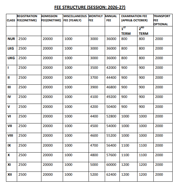FEE STRUCTURE OF (2026 - 2027)
